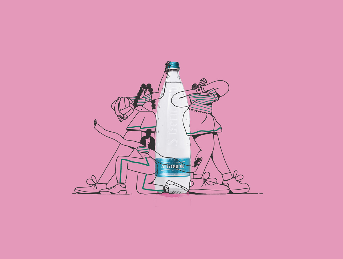 今天分享的是 Bernardo饮品品牌与IP形象的结合——每个月,会有不同的插图呈现,并且会对与水有关的主题插画形象进行阐述,向受众展示这些主题内容,其中有描述人们喜欢户外活动的故事,从而享受运动的美好时光,并从中锻炼身体。