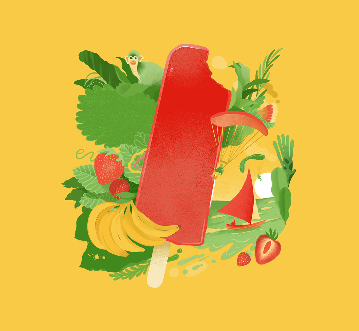 生命不息,奋逗不止,奋逗家族(fundog)每天会为您呈现丰富有趣的内容,例如:原创IP形象、fundog、 IP衍生品设计、原创IP形象孵化等,今天为大家展示SoFruitty冰淇淋品牌的插图形象,插图展示特定的场景,表达大自然的故事,它与动物、植物的结合,构成一副有趣、充满生机的品牌故事。